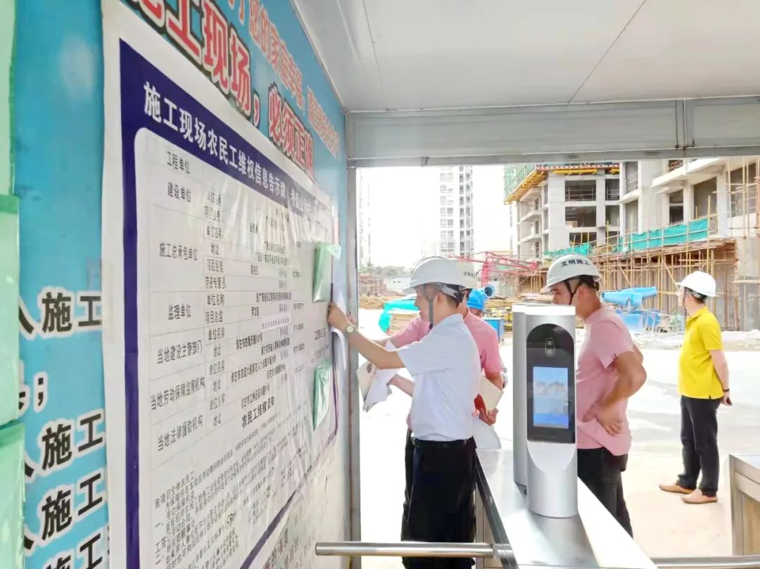 ▲市人力资源社会保障局组织人员深入项目工地检查农民工工资支付“一金七制度”落实情况。资料图